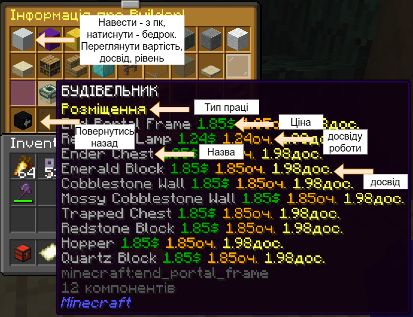 ПКМ - влаштуватись на роботуЛКМ- подивитись інформацію про роботуQ - вийти з роботи
