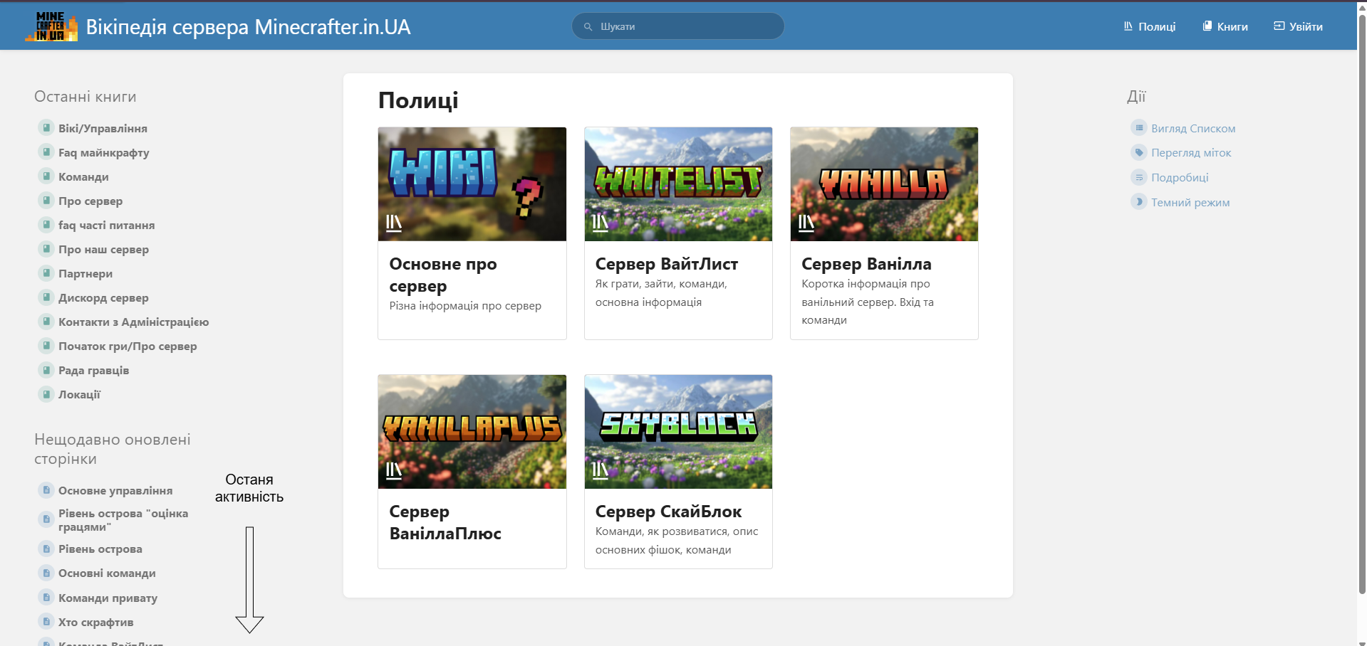 - Остані книги. Книги що були недавно додані до вікі (зліва подробиці)